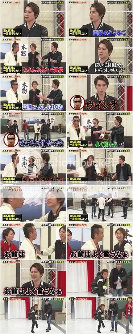 潤就解釋說當他們知道下一位嘉賓是長渕桑時他們也很期待因為好久不見了,但是長渕桑走進來時就戴了副墨鏡,看起來超級可怕。