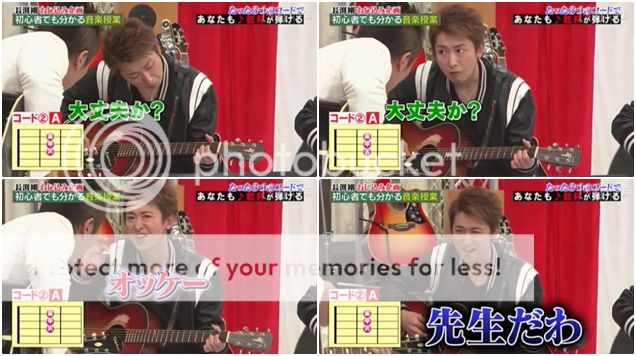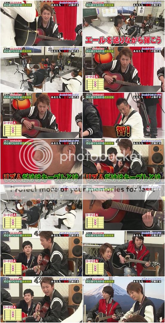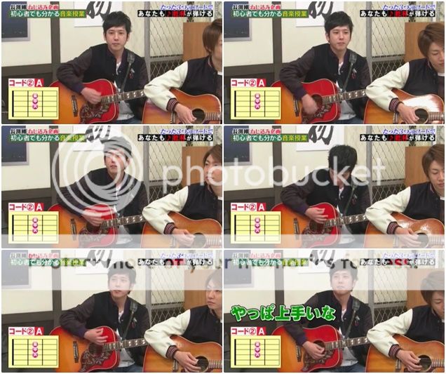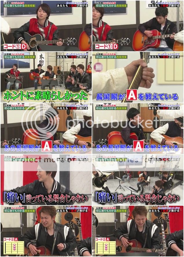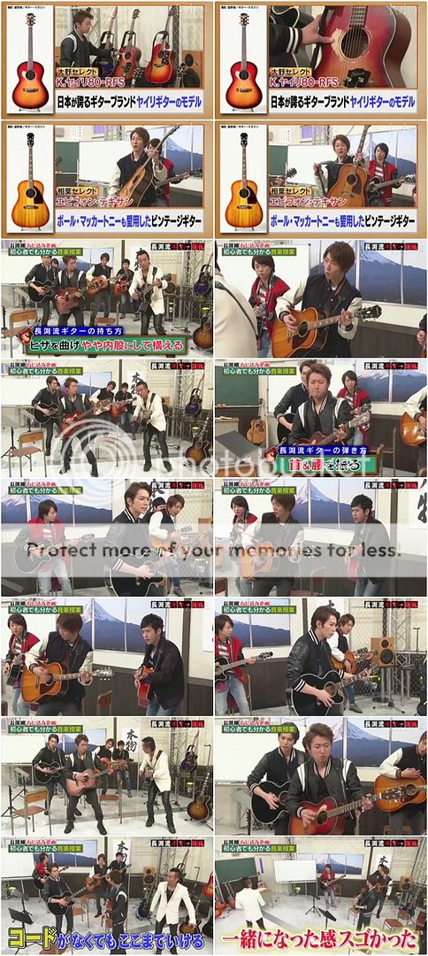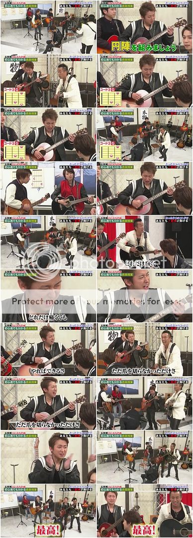 下來就是要來了解本物的吉他!長渕桑先教門把怎樣才是使用吉他的指法。大家看長渕桑彈吉他整個看的好入神啊。NINO好下意識的說『也太上手了啊。』(自己身為吉他手都敬佩渕剛桑呢。)長渕桑吉他還真是出神入化啊!!NINO驚嘆『完美!』翔『感覺今天完全做不到這個啊。』長渕桑『今天不會教這麼難的。』