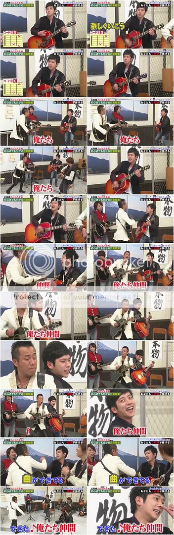 輪到NINO時,長渕桑要NINO更激烈一點的彈奏方式,然後就開始唱起歌來了,NINO也整個好配合的人家長渕桑唱一句,他跟著唱一句。最後還靠在一起的合唱簡直是天衣無縫的搭配啊!!就這樣作出一首曲了啊!NINO都把歌曲名稱想好了,就是「俺たち仲間」(我們是夥伴)。