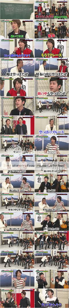 下來就請櫻井桑。翔就有點慌張了『誒?我?要在這個之後?』(因為雅紀太high所以翔覺得太難了啦。)到底在唱些什麼啊!什麼財布空空的,腦袋空空的。其他門把還跟著high起來的在唱財布空空,腦袋空空空。哈哈哈!!!你們這團真是來鬧起來沒話說啊!太爆笑了這裡!五子就和長渕桑一起一直用腳大力的跺腳表示激昂憤怒。跺腳結束時,NINO『先生,我的腳要斷了。』哈哈哈!!!這個財布空空腦袋空空你們也太high了吧!這句話太適合我們了啊!財布空空。笑。
