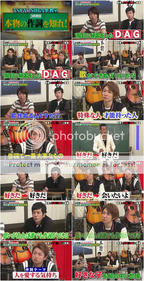 一個個門把來考試的感覺好有壓力啊。不過翔表現的也太好了!!我們翔是會彈吉他的吧?不錯啊!!被先生誇獎就笑出來說『心情很好~』那個笑容真可愛。