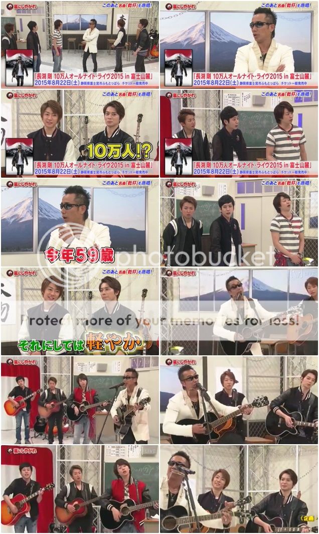 潤彈奏之後,長渕桑果斷還是要說潤是溫柔的touch。然後長渕桑又對著潤作曲作詞起來了。基本歌詞就是說潤好溫柔,那樣的眼神會迷死全部女生這樣。哈哈哈!!真的啊!!你第一天知道我們潤爺的魅力啊!長渕桑不能這樣和潤弟弟對視,會被迷倒的喲。嘻嘻