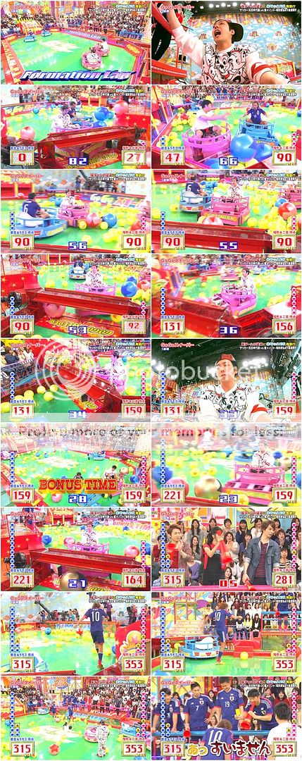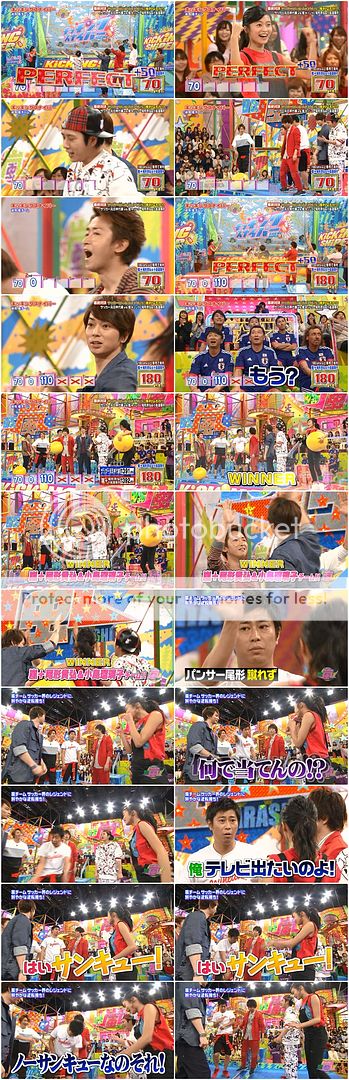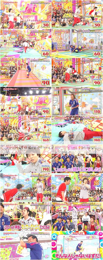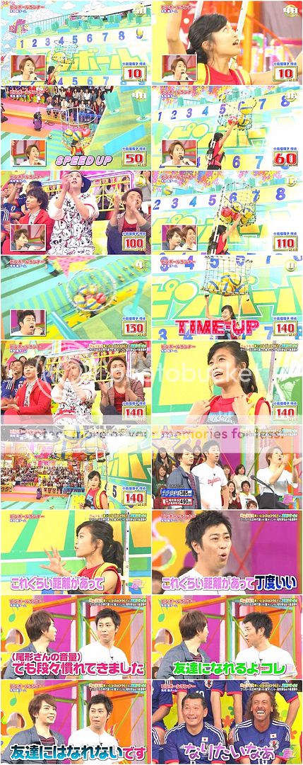 現在只要180分以上就獲勝了!第一棒是LADIES ZONE的小島桑,NINO好優しい的說她沒踢到沒關係哦(後面會補上嘛),而小島桑就轉身問RAMOS桑如果她踢到了不要對他發怒哦,RAMOS桑就默默的比了個好的手勢,對女生真是優しい啊。而第二棒是翔潤和尾行桑,最後是天然。
