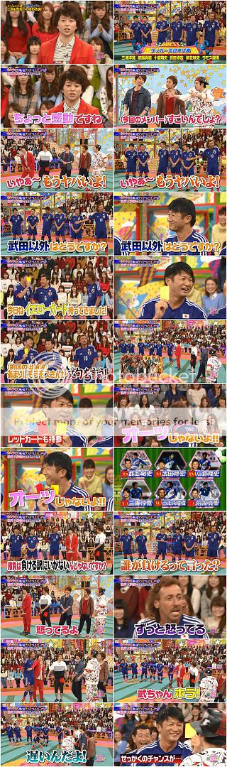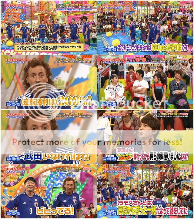 請出今晚的對決嘉賓,是元日本代表隊。RAMOS桑來了!!翔『這個組合看的好感動啊。』NINO說這是好厲害的組合啊!翔更是tension很high的大叫『呀~~~~牙白啊!』RAMOS桑就吐槽說除了武田桑以外。噗!武田桑就說今天他拿了黃牌來因為RAMOS桑實在是太容易發怒犯規了。後來還直接把紅牌都拿出來了(是要RAMOS桑出局嗎?)吐槽RAMOS桑,RAMOS桑直接走了過來要和NINO興師問罪被翔抓著阻止。NINO就叫說武田桑你的黃卡!可是武田桑就這時候才在自己襪子裡找,NINO就更是吐槽『真慢啊!』哈哈哈!!!完全不能做裁判嘛武田桑。