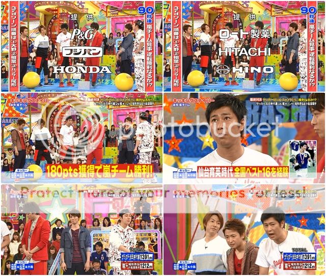 說真的武田桑你們表現太糟糕了!!最後是161對369,嵐隊大分比領先。就如我看到的,翔是進了2顆金色bonus球,而武田桑是0。直接準備要被RAMOS桑罵了。因為都並桑有進了1顆金色球所以走去後頭不用被罵。