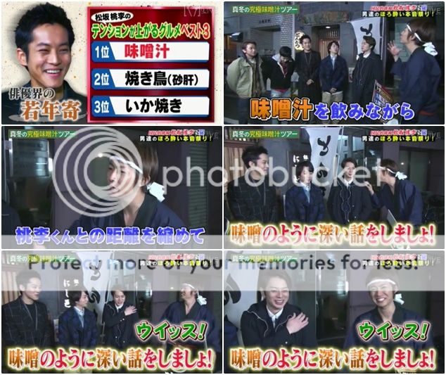 雅紀cue說已經和桃李桑縮短了距離呢,那可以到下一家去了。NINO『幹嘛要那麼急?』雅紀『你們不會忘了今天主題是味曾湯吧?』而且下一家已經在等著了。