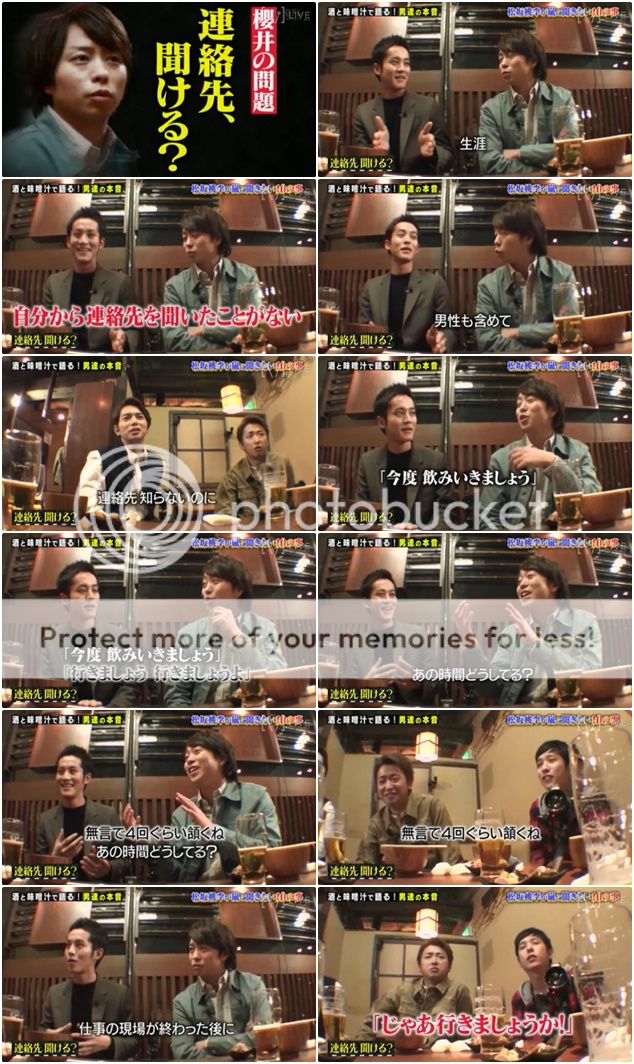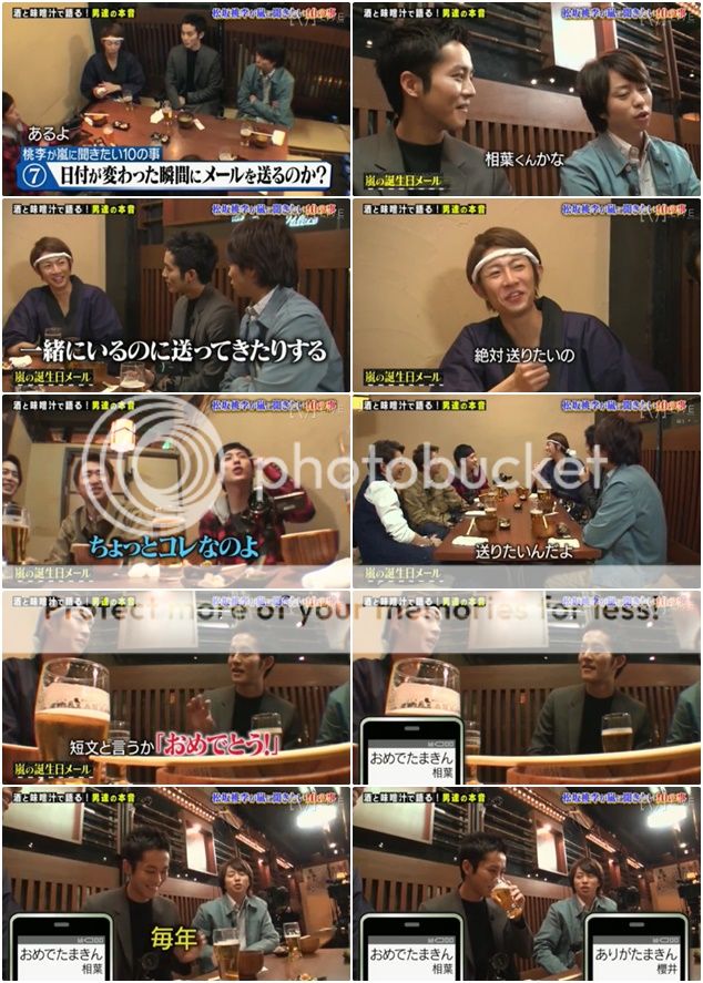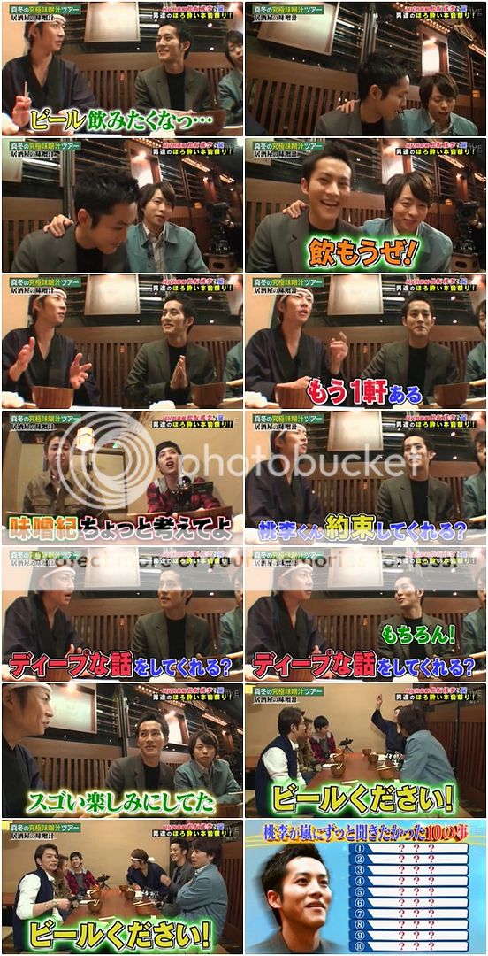翔請桃李桑來為乾杯說兩句。桃李桑說今天真是個難得珍貴的機會啊(可以和嵐一起喝酒)。』潤『也沒有那麼珍貴吧?』於是為這個難得的機會來乾杯吧~翔為什麼每次喝酒後都要做出很像大叔喝啤酒的舉動啊!?