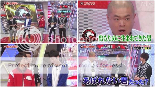 最後是請嘉賓來選擇一位嘉賓出來和他一起配合演搞笑短劇,而門把就抗議說不是剪刀石頭布而是讓嘉賓選擇?於是就看到四位門把站在前面,嘉賓在後頭選擇。看NINO笑的那麼賊,我也就猜到肯定就是潤中招了,因為嘉賓的太太很喜歡潤嘛。然後潤自己也感覺到牙白了,於是在嘉賓靠近他時,他就自己移動了位置。不過最後還是選擇了J。
