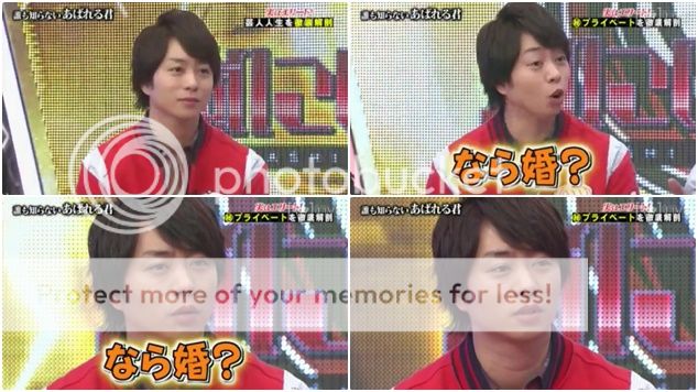 翔說對於嘉賓上なら婚番組很感興趣,就被NINO說『那是上級的的內容。』(因為今天是分下和上級來了解嘉賓)。翔残念的樣子太爆笑了!