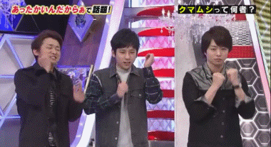 雅紀『KK。』潤『柚子。』NINO『コブクロ。』那利達呢?誒…………想好久,最後說出的答案害我大噴笑『Mr. Childrenじゃない(不是Mr. Children)翔也整個大噴笑『正解哦!』當然不是Mr. Children啊!因為他們不是二人團體嘛。利達最近怎麼那麼有梗啊!!