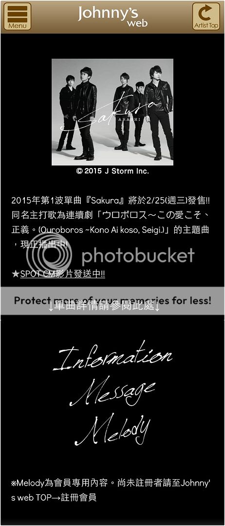 點進去看到五人那帥氣的樣子,連會員的FAVOURITE ARTIST也換上這個頭像我都快尖叫了。超喜歡竹馬的造型啊!單人的寫真,翔的圖怎麼那麼可愛啊!有種無辜感?哈哈哈!阿姨感覺修好多啊!噗