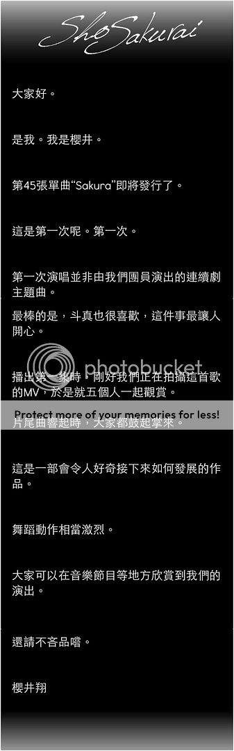 順帶一提,我喜歡這次寫他們名字的font。真的很有“SAKURA”的感覺。(說什麼啊,聽不懂!)