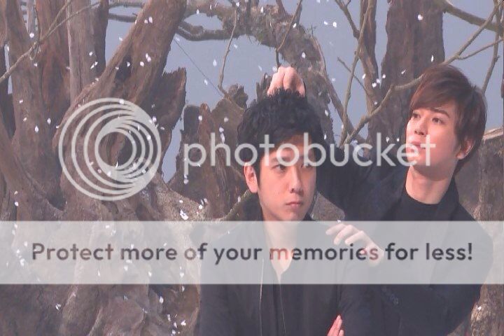山組也有取掉花瓣的動作也好可愛!!利達主動幫翔拿掉頭上的花瓣,翔就對利達說thank you。但……其實利達根本沒幫翔弄掉啊!!所以後來staff桑來弄了。噗!