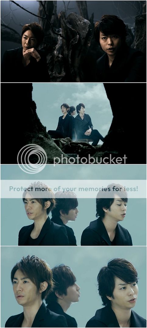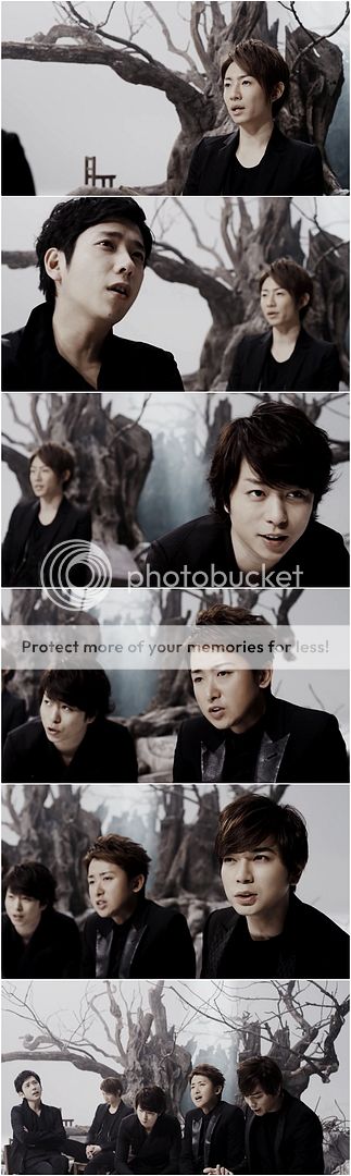 接下來我最喜歡的畫面就是TOPICS裡有提到的,他們坐著然後從雅紀開始拍攝到NINO、翔、利達、潤、最後就出現了五人的畫面。一樣,點擊下面送大家五人那張當壁紙。