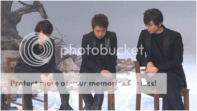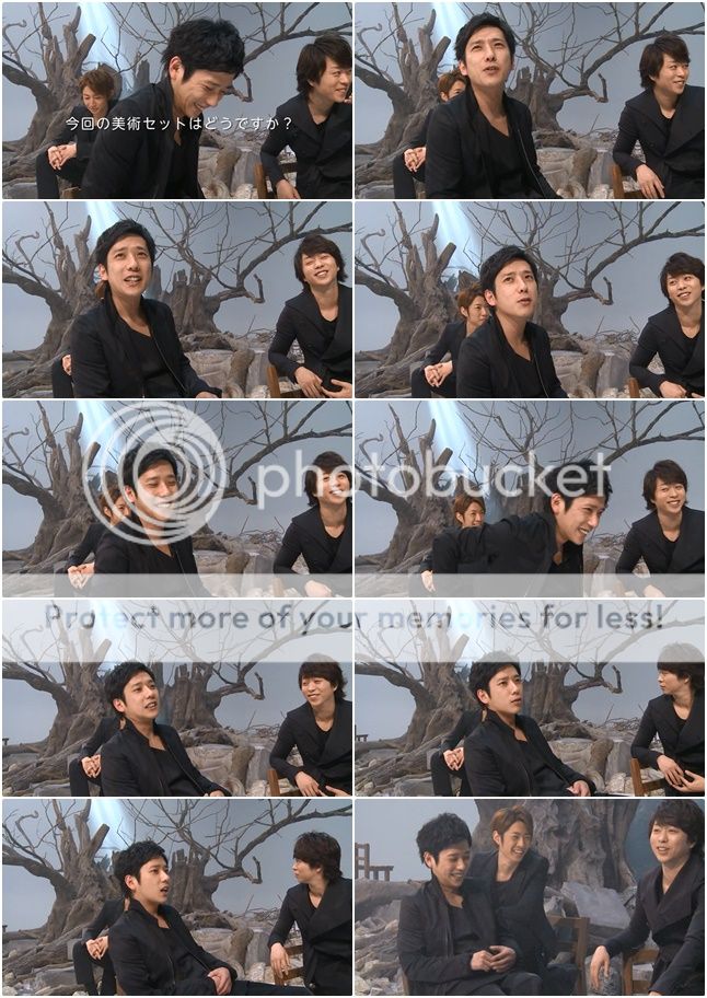 潤先問雅紀這次美術佈景是怎樣的感覺?雅紀的回答好可愛!!雅紀『結果花了好多錢呢。』哈哈哈!!確實呢!!那顆大樹可不一般啊!不過我很注意的是翔在看雅紀的眼神。其實潤看雅紀的眼神也好粉紅啊!!!這怎麼有種三角戀的感覺啊!!(CP飯真的沒得救了我)翔說這次完全走無CG(後製效果),全部都是來真的!櫻花瓣什麼的都是真的!!不過雅紀回的那句『NO Cジ(因為一開始翔發音錯了)?』好可愛啊!!!好舒服的三個人啊~~~看的我都覺得好舒服。(管你屁事)