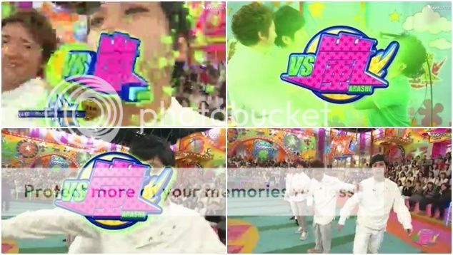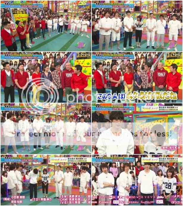 先是嵐隊上場!今天粉色區是模特、綠色是有村醬和翔、橘色是利達和福士君、NINO負責給指令和隨意穿插。現在兩隊分數幾乎相同,是從新起跑點開始比賽的感覺。