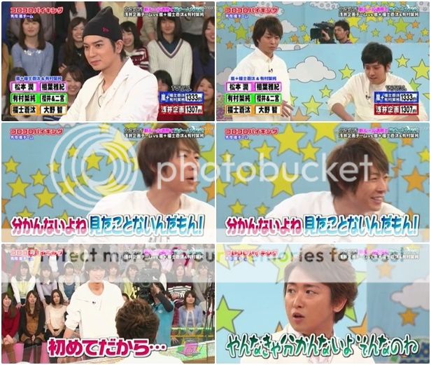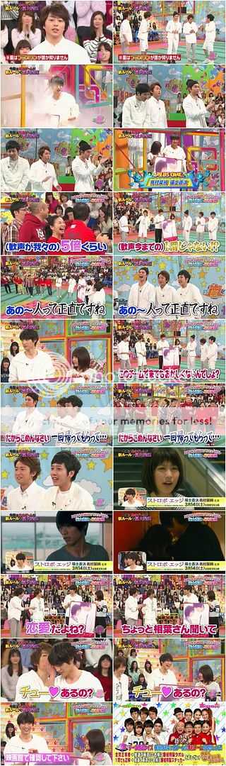 而現場的觀眾真的應援聲超級大聲的,淺井隊都說比他們出來時的聲量大了5倍,於是就吐槽說人還真是現實啊。哈哈哈!沒辦法啊,他們是偶像嘛。看兩位拿著番宣的海報,兩位有新映畫要上映了!給機會兩位宣傳後,翔就問那這部應該就是愛情劇吧?那請相葉桑來問一下他們。哈哈哈哈!!!每次你自己最想知道都還是要推給雅紀來問。於是雅紀就和福士君咬耳朵,但是聲量卻超級大聲的問『有chu(親親)戲嗎?』哈哈哈!那就請大家進戲院去看看他麼是否有chu囉~