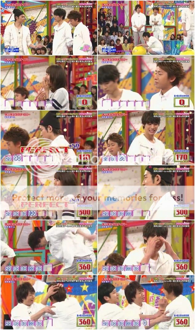J第二輪PERFECT、福士君你怎麼了!!!有村醬第四輪PERFECT後翔也順利踢倒好幾個瓶子(雖然沒PERFECT),最後一輪大家都MISS了,到了雅紀那裡,雅紀竟然也大MISS!翔就抓著雅紀的肩膀『你怎麼了!?!』NINO也擠上來興師問罪的樣子好可愛!!不過你們是不是對雅紀太暴力了呀。哈哈哈!