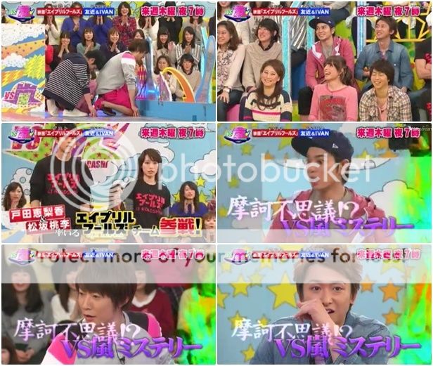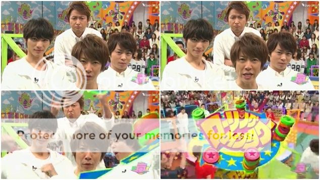 鏡頭終於對準了這裡的三位胡鬧組合。翔說他的腦袋裡只繞音著剛剛那首女、女、女……的歌曲。NINO就吐槽翔的說『給我集中!』翔就說沒辦法(被洗腦了),怎麼知道雅紀也附和翔說他也是被魔音侵入了!哈哈哈!櫻葉倆笑著擊掌!還一起擺出了人家剛剛那個唱歌時的動作。就是要那麼有默契的配合彼此就對了!!NINO在旁邊看著都笑出來了。