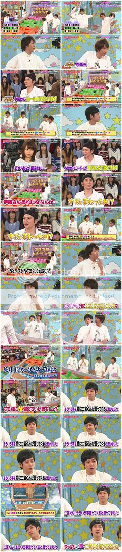 翔於是問『那比如說,把10分的COINS都給他們?』J『我可沒說喲。』這是J在給翔鋪陷阱的感覺嗎?NINO於是就提議不如讓淺井隊來自己奪得10分的COINS吧。就請飯尾桑來表演段子,如果有村醬笑出來了就把10分的COINS都給他們。沒想到,那個段子超級沒梗的,但是有村醬還是笑出來了。J『不會吧!?』不過後來那個剩下眼鏡的梗還蠻可愛的。好吧,門把就信守承諾的把10分的COINS都給了淺井隊,自己只能用5分和3分COINS。