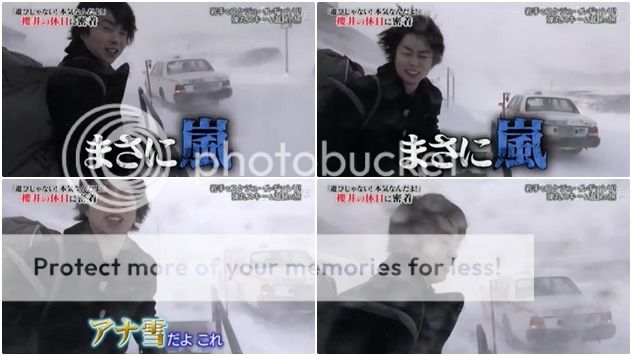 接著翔就是翔,怎麼可能這就回去呢?下個行程要去泡湯。沒想到因為暴雪的關係,司機說他不能再繼續往前開了否則會很危險,於是距離泡湯的地方還有500m,翔得自己在暴風雪裡走到目的地啊!!
