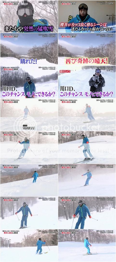 全副武裝的翔超級帥氣的!!不過我們AD桑就殘念了!!才剛上滑雪場就先滑倒。哈哈哈!翔滑下去時,他就沒追上翔的腳步所以完全沒拍到翔帥氣的英姿!!可惡啊!!我們要看的就是翔帥氣的滑雪啊!拍完第一次滑雪後,又開始飄大雪了,所以得又暫時不能拍。AD桑都有點懊惱了該怎麼辦啊!!沒東西回去交差了!