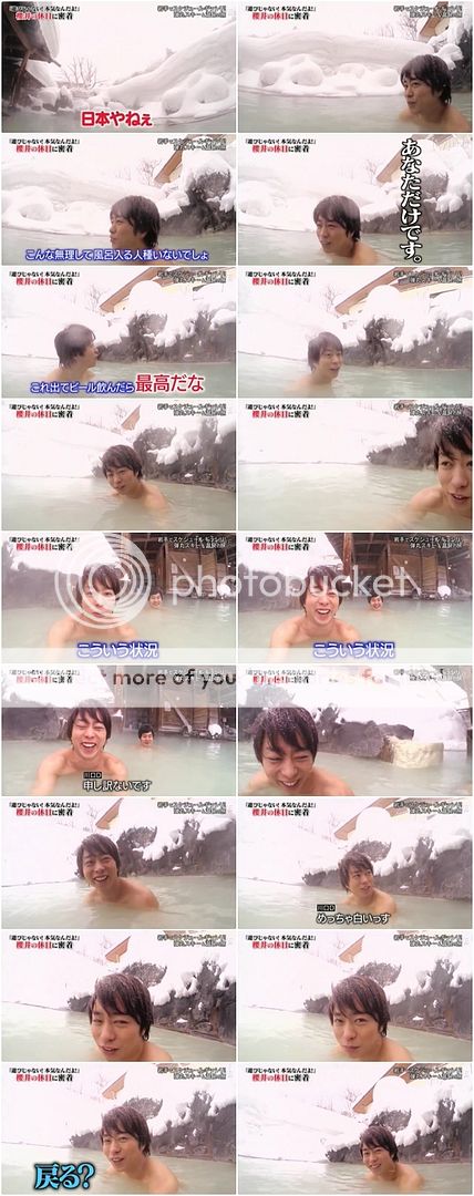 在白雪裡泡湯到底是什麼感覺啊??不會很冷嗎???不過兩個大男人一起泡湯確實沒什麼好看的呀!!我要看的是櫻葉夫婦兩人再一起泡湯啦!!翔自拍他和AD桑時那個好蘇好萌的笑顏最高!!