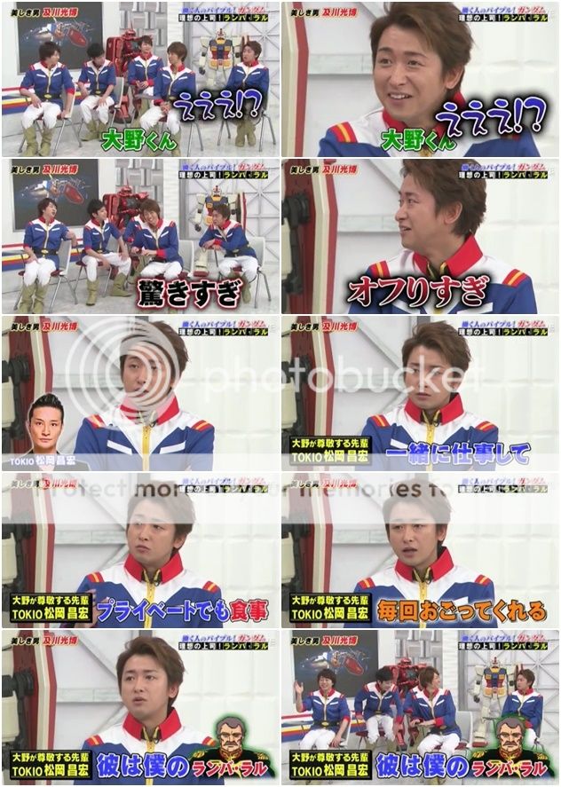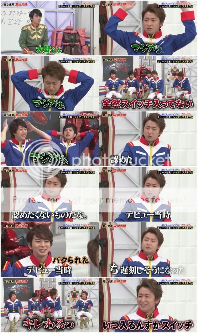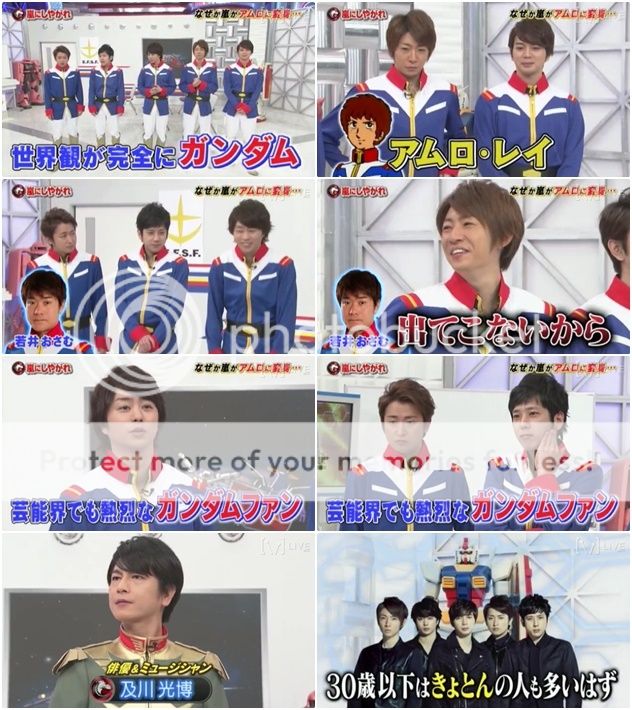 回到攝影棚部分,今天五人穿了好帥氣的服裝出場喲!今天的嘉賓俳優及川桑!完全的GUNDAM飯!(GUNDAM我竟然也蠻熟的,真是要暴露自己的年紀了。雖然我不是飯。哈哈哈!我還以為沒什麼人喜歡這個了呢。)