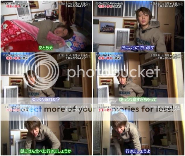 輪到雅紀的休假日密着映像。雅紀果然是回了千葉!怎麼會出現他和男人睡在一起的畫面啊??這樣翔知道嗎?有被批准嗎?哈哈哈!