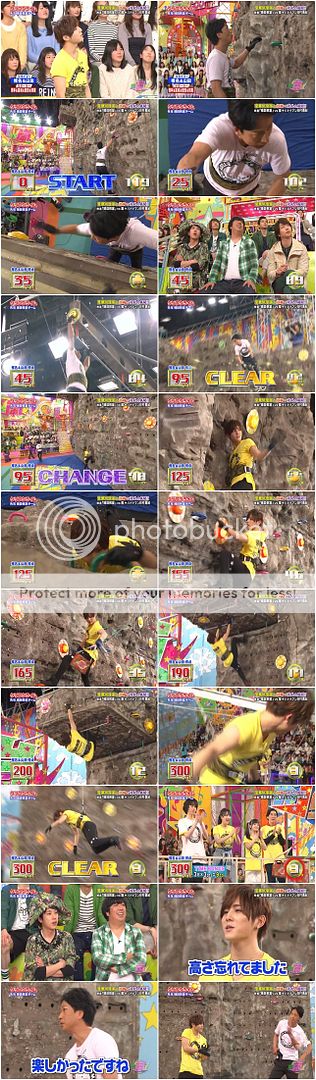 翔很小心但是也很快速的攀上去了,真的有在積極的給自己累積好PLAY哦。好快速啊!!!我們櫻井翔先生不單是挑戰兩面牆成功,台場手指成功,還史上第一次剩下21秒時間啊!!!!厲害啊!!你看嘛你,其實要做還是做得到的。不要每次都做梗呀。