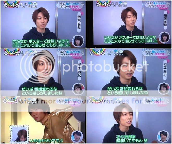 雅紀說這個海報是目前為止沒看過沒拍攝過的概念,這也代表了番組改革的感覺。但是擺出那個姿勢,雅紀埋怨說左股的關節超級痛的。