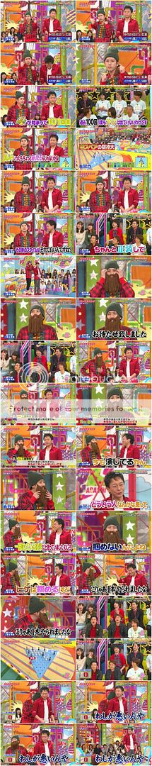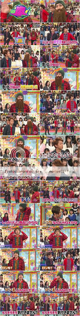 忽然NINO把鬍子抓到自己脖子後好好笑!!不要胡鬧了鬍子男!J忍不住的問『這個是這樣用的嗎?好像不應該是放在這裡的吧?』(J很懂!!不愧是時尚男。而據雜誌的預告圖,其實J也有同樣的服裝。哈哈哈!!オシャレ吶J爺!)NINO『這不對嗎?還是這樣戴?』於是NINO就把鬍子拉了起來到頭頂(其實這樣好可愛!),然後把帽子轉去後頭。所以現在是鬍子變成長髮了?哈哈哈!!真是太有趣的帽子了!門把『長髮?』NINO『才不是長髮!』