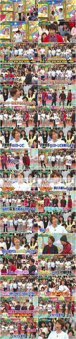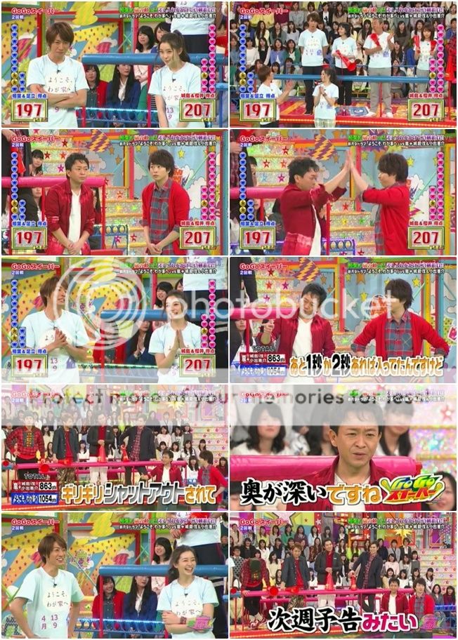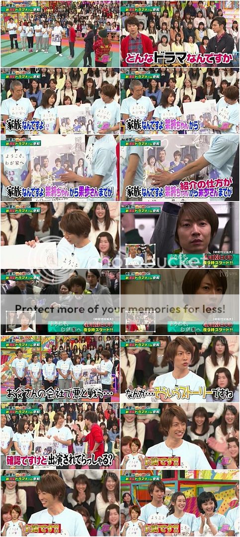 首先是ようこそ、わが家へ劇組(月九隊)上場。雅紀你好可怕!!站在後輩藤井君身邊都比人家還瘦那麼多!!你看你的劇組番宣的TEE有多寬鬆啊。雅紀說這個劇組隊合作的非常好所以想獲勝。翔問除了那一家人,其他兩位是和這個家有什麼關係?藤井君說自己在劇中是在追有村醬的。NINO『那你就是stalker了吧?』藤井君還搞笑的回答『是的。』被雅紀激勵的阻止!城島利達『流星、流星,趕快進行下一個。』哈哈哈!!不愧是大前輩啊!!於是藤井君的介紹只能到這個段落。下來就介紹足立桑的角色。