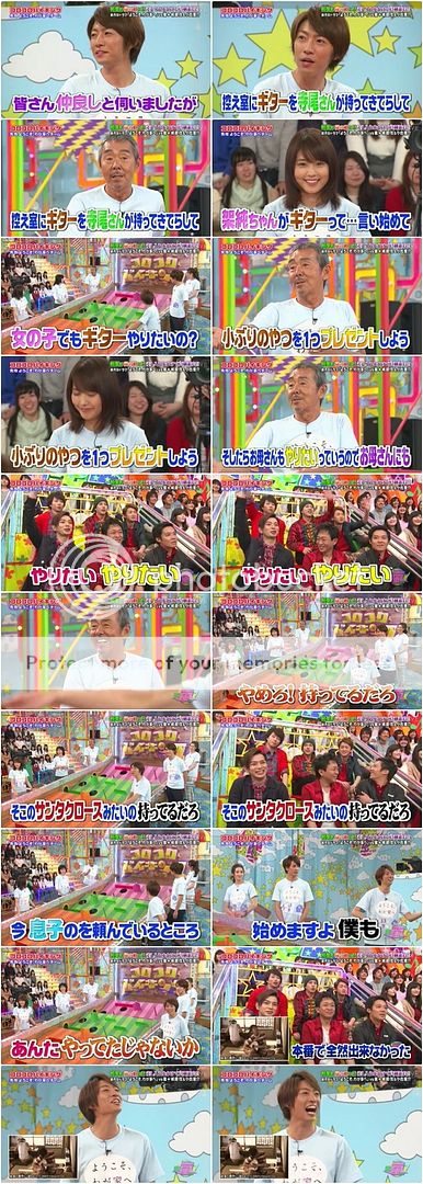 雅紀說這個劇組感情非常好,甚至在控之室(待機室),寺尾桑還帶吉他來送大家。寺尾桑說要從有村醬開始說起,因為她想要學吉他,他覺得女生想學吉他很稀奇所以就帶了自己的過來,之後媽媽看到也想學,最後雅紀也表示想要學,便帶來送大家了。這時候我們J弟弟調皮的舉手說我想要我想要,然後其他門把就跟著舉手我也要我也要。雅紀就阻止大家,指了那裡某竹馬說『那位看起來像聖誕老人的你明明就有了啊。』NINO『啊!可惡啊。』的跺腳。你們好幼稚但是好可愛啊!寺尾桑『現在的兒子開始學了。那裡那位已經彈過了(指的是NINO喔,因為在優しい時間就是飾演NINO的父親)。』雅紀『對,只是(現在的兒子)彈的很差(說自己。哈哈哈)。』
