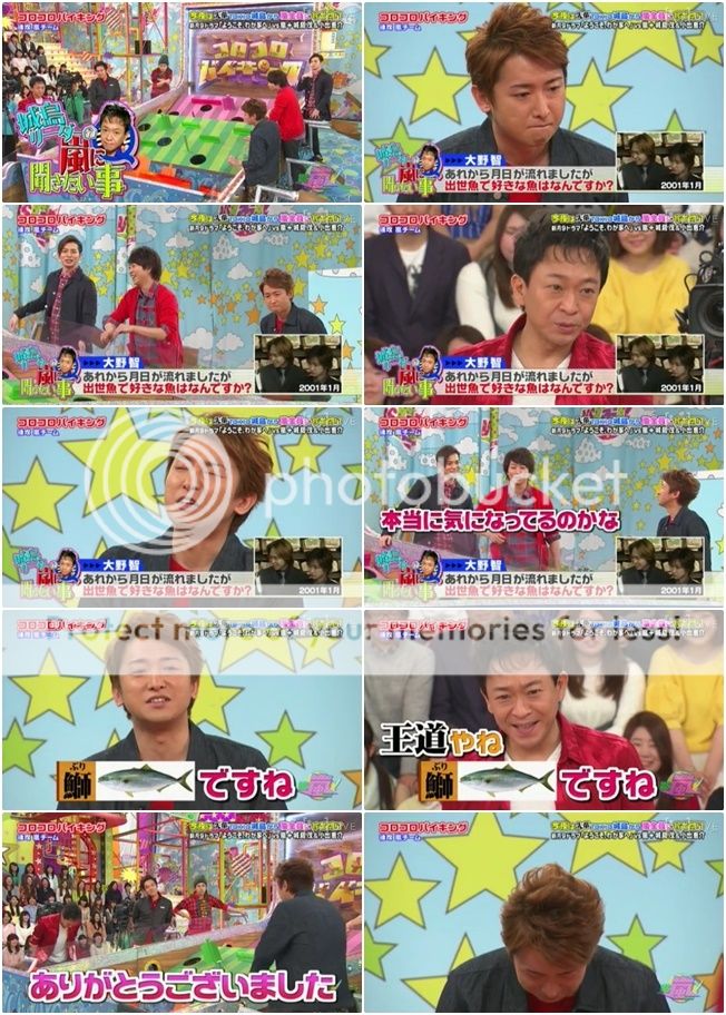 之前V6的隊長不是每次團員來VS嵐都會給他們MEMO嗎?這次城島前輩來也要給嵐們帶來“城島利達想問嵐的事”單元。首先就從合作的大野利達開始發問。城島利達問我們家大野桑說出世魚當中大野最喜歡哪個?』翔『還真的很認真的思考啊。』利達『鰤』城島利達『王道啊。感謝你。』噗!!這樣的問題到底有什麼好問的!