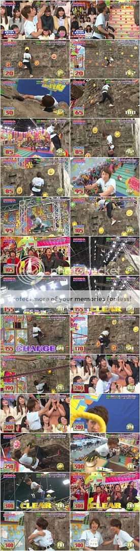 因為城島利達花掉太多時間了,J也稍微晃了,快速的爬上去時有幾乎要爬不穩的感覺。不要晃啊J爺!知道時間剩下不多,J直接放棄了幾個分數,往50分的粉色按鈕前進。最後一秒讓他按下了50分。沒能CLEAR好可惜。
