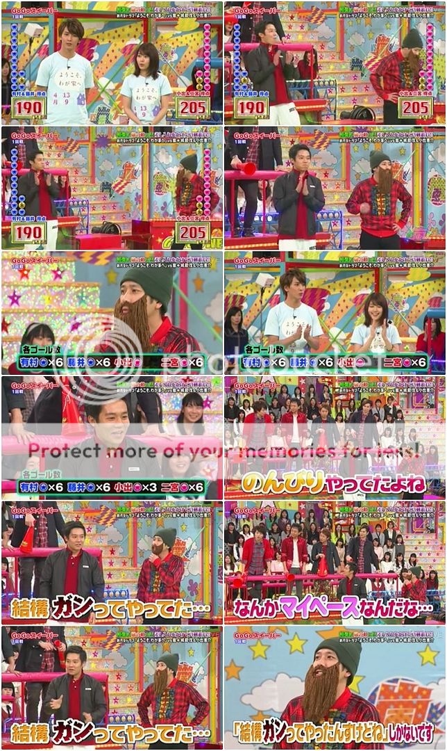 第一棒是有村醬+藤井君 VS 可疑的聖誕老人+小出桑。現在嵐隊可是落後了210分啊,NINO也說而且嵐隊還有負30分的球。於是我們優しい的雅紀表示『那我們就歡樂的來對決遊戲吧。』被NINO打斷了接下來要說的話『沒關係。OK。』雅紀於是提議那就拿掉黑球吧。(大概因為知道如果還有黑球,嵐隊就肯定就輸很慘了)藤井君也贊同拿掉。NINO『那表示要優惠我們咯?』(怎樣?常規的面子問題嗎?)雅紀『你這笨蛋!』哈哈哈!!第一次看雅紀罵NINO,超級可愛的!!翔『那大野桑怎麼做?』利達『那就那麼做吧。』哈哈哈哈哈!!!我們家利達可是一點也不手軟的接受優惠的喲。噗!!翔『說出這樣的話一點都不覺得後悔呢。』利達『不會後悔喲。』噗!!!有村醬也表示為家族一定會努力,絕對不會輸給那個鬍子男的!哇哈哈哈哈哈!!!!!你們這對前任師生也太可愛了!!
