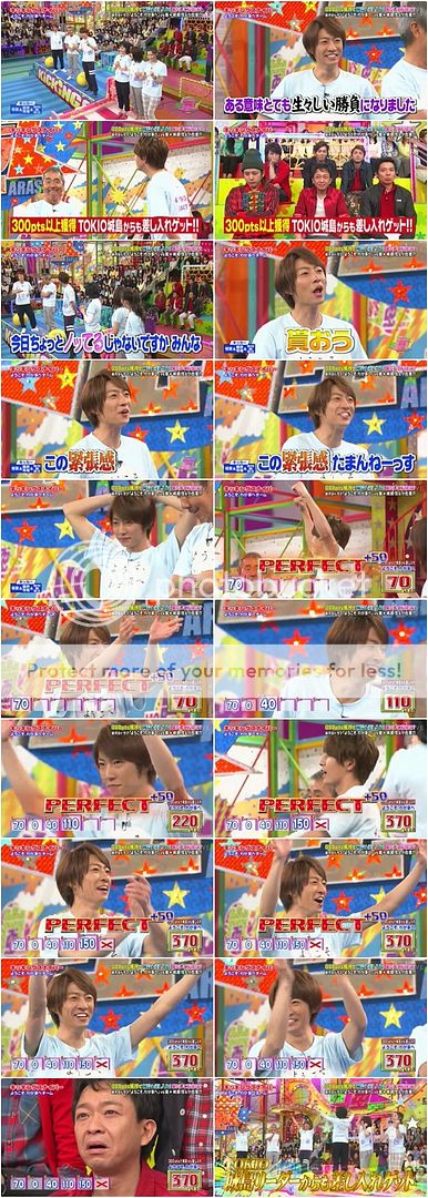太厲害了吧!!!第一輪就給藤井君PERFECT了,雖然雅紀miss了不少。但是第四輪也給雅紀PERFECT了,370分勝利!那城島利達,謝謝你的禮物!嵐也快點去探班吧~