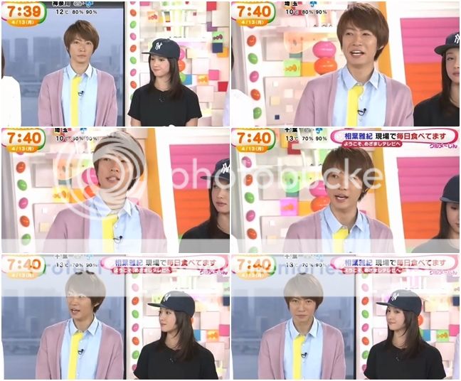 主播問雅紀在拍攝現場是不是很常“做某個動作(吃香蕉動作)”來POWER UP。雅紀故意裝傻『你那是在做什麼?』主播『誒誒?這樣啊。』雅紀『啊~是這個啊。』哈哈哈!!一早就好有元氣啊!真是前輩級啊,上新聞台番宣熟悉的很,都可以和主播胡鬧了,好會做梗。