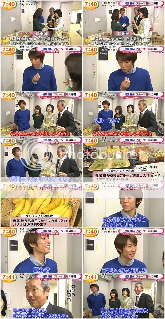 雅紀說在拍攝現場幾乎每一天寺尾桑都會帶水果來請大家吃,真是每一天喲。(好健康的劇組啊!太有愛了!)
