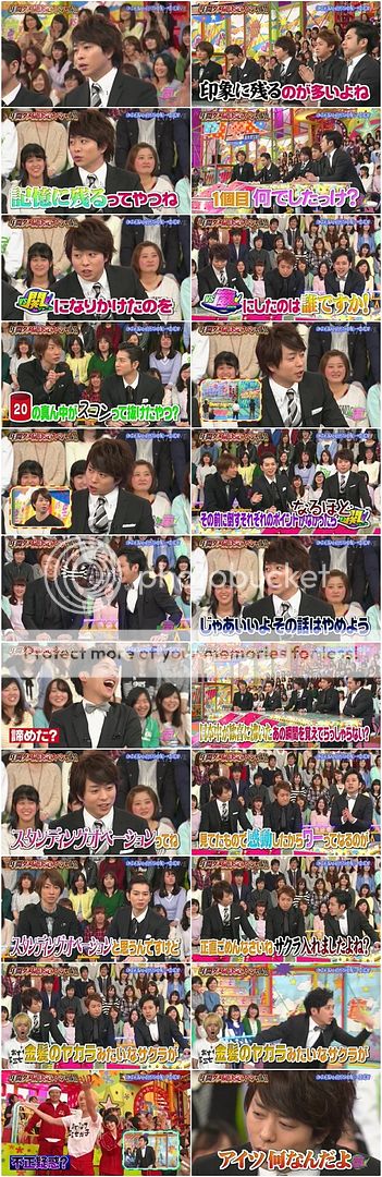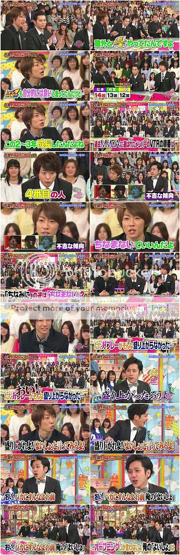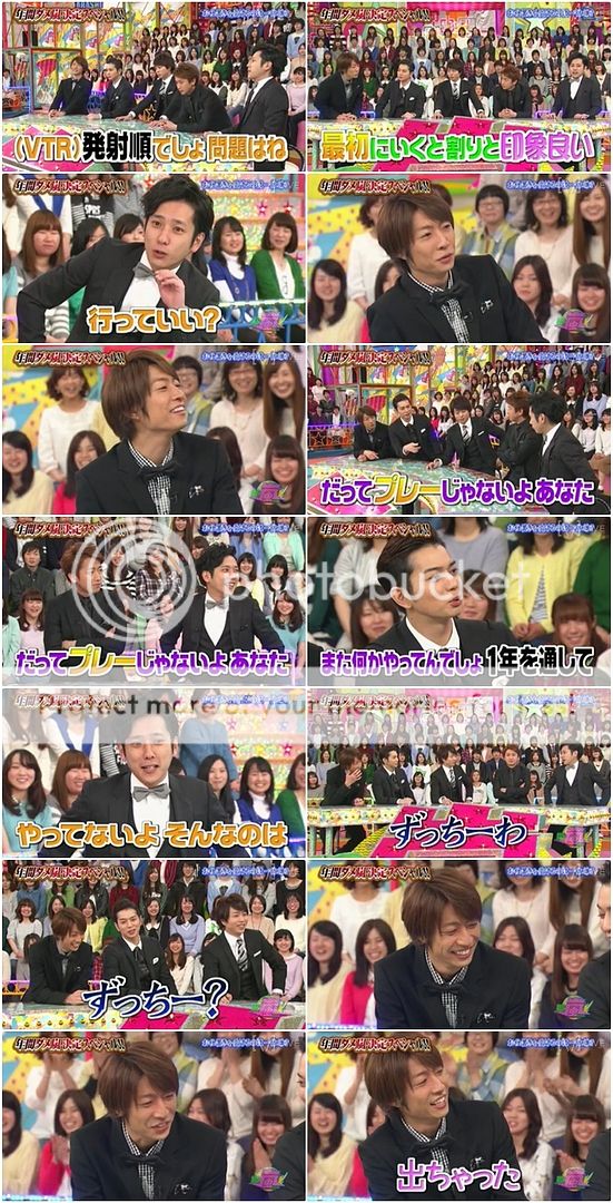 staff桑這時候在外頭給額外資訊。翔就說『順便一提(ちなみに)過去三次的MMDA都是播放VTR順序第四位的那個人。』哈哈哈!!不要故意這樣嚇雅紀啦!!真是不吉利的順序啊!!雅紀就故意裝傻『其實要ちなまない也可以。』(ちなみに逆轉就是ちなまない。這個梗我沒辦法解釋啊。不好意思。)
