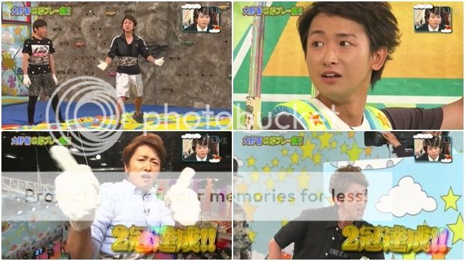 今天翔在番組的責任就是來稱讚門把的吧。翔留意到了CLIFF CLIMB長末搭配的次數很多。所以我就說啊利達在CLIFF CLIMB根本就是作為補助的功能,第二棒多數都是J來擔任,所以成績才沒那麼理想(加上次數不多)。被翔這麼提醒,利達也恍然發現了這個事實。NINO藉此來吐槽利達『現在是松本桑發言的時間喔。』但是利達不甘心『我也爬的很快,是我剩下很多時間給你(松本)的呀。』J笑了笑『大野桑,不好意思。現在是我的發言時間。』哈哈哈!!NINO『你開始感到不安了吧。』(指利達)