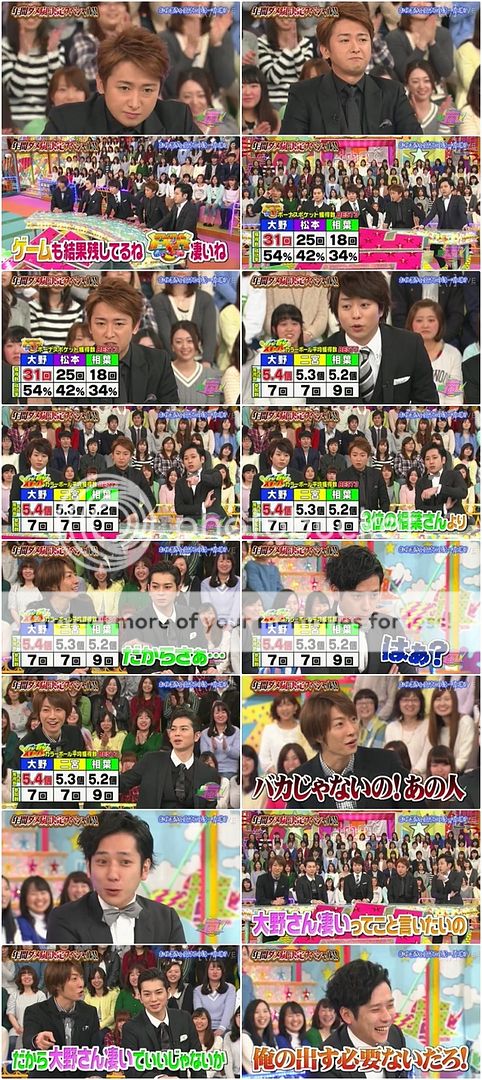 伊藤桑每年都是負責來告訴門把今年戰績如何。2014年度48場對決(播出只有45次),嵐有28次獲勝、20次敗筆。比起去年進步好多了!!お見事!