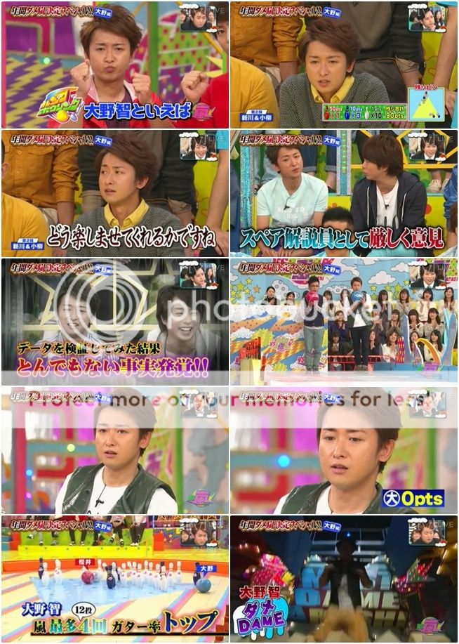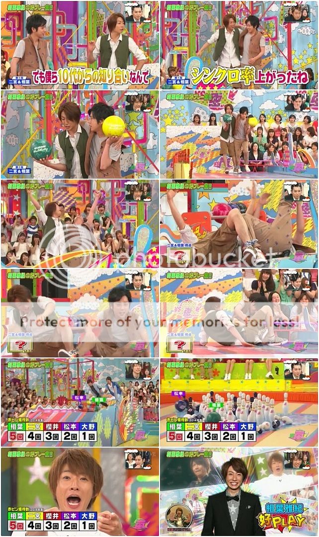 接下來印象最深刻當然就是spare解說員。不知道什麼時候開始的(如果有人記得麻煩告訴我一下?我好想去回顧那期啊!)利達就定番變成了BANK BOWLING SPARE的解說員。每期伊藤桑都會cue利達來說有沒有可能spare成功,多次被利達好無情且超級嚴格的說可能性不大。但是身為解說員的大野智,自己本身在BANK BOWLING表現呢?我說啊可以用『慘不忍睹』來形容了。哈哈哈!!好多次是完全沒碰到任何瓶子就這樣結束了。