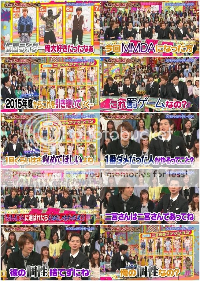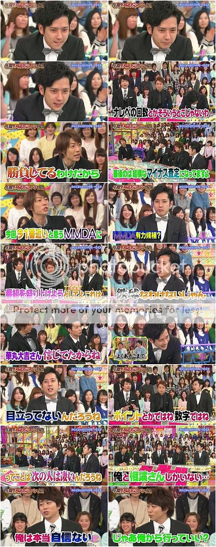 伊藤桑直接潑了一大桶的冷水在五人身上,這次的MMDA完全和今年度勝負次數無關。哈哈哈!而且這次MMDA也可以來回顧一下收錄時門把的態度好壞。誒??原來態度也被重視的啊?那某人策略完全中了!!整個好得意的說!!哈哈哈!回顧一下:去年NINO的好play就有提到他在拍攝VTR時都會和staff桑說謝謝,很有禮貌喲。所以難道今年又要來這招?而這也是為何雅紀要說小心這傢伙。哈哈哈!