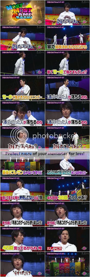絕對第一名的就是BANK BOWLING!!!只有1分成績還不是NINO的球擊倒(是翔的),而且還被PLUS ONE喊你這是在幹什麼啊,再來就是多次被快轉就證明這個遊戲NINO表現還真是ダメ啊。NINO是今年快轉畫面最多次的門把。NARRATION(旁白)王就是這個意思。