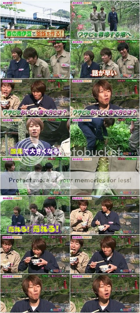 為了製作南伊豆的鐵路便當,還需要ワサビ(WASABI),所以雅紀帶了兩位關八團員到山葵園來打擾農民了。鄉下的人好像都特別熱情啊,每次雅紀拜託都很快速的就答應讓他們來幫忙。