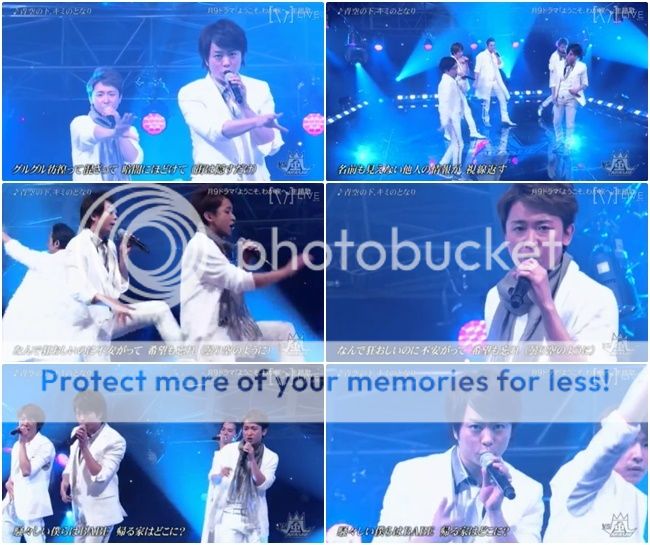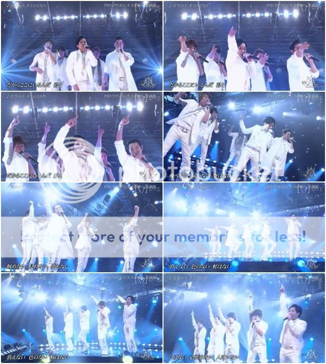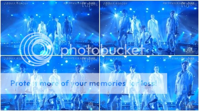 最後是嵐隊上場。中間第二棒是利達+雅紀+翔!!!最後一棒就是末子!!!末子那身高差太萌了~~~(我竟然不是因為櫻葉,而是末子那身高差尖叫出來啊。哈哈哈)