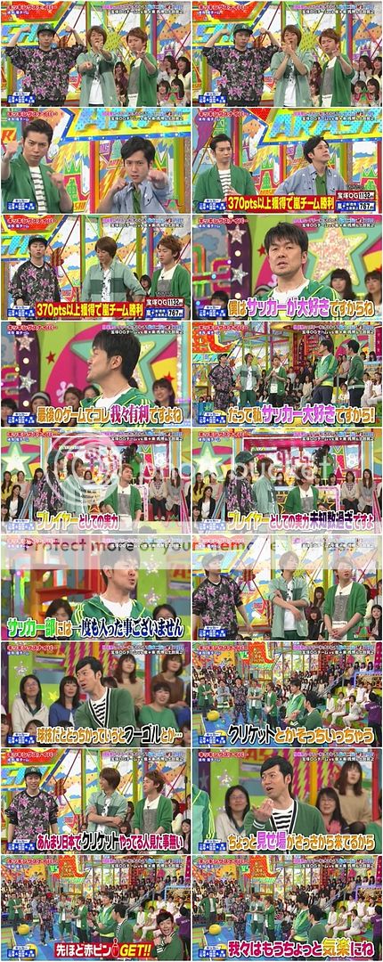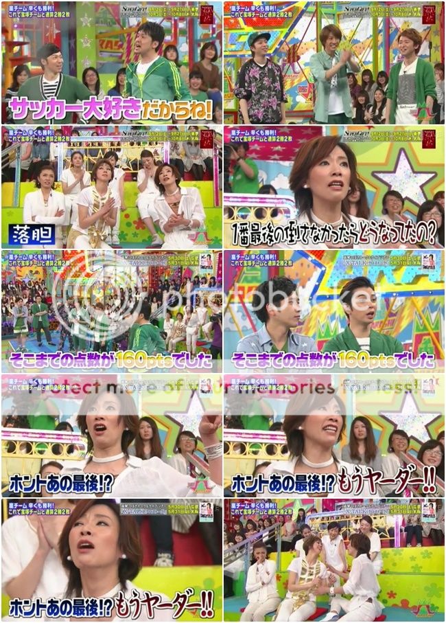 於是就期待末子的オシャレ絕招吧。怎麼知道………………真的想對你們說“ふざけんだよ!!!”J還一度把球踢的那麼小力,完全都沒到台子那裡啊!!!自己都笑的跪下來了是怎樣啦。最後多謝土田桑的PERFECT啊!!!今晚是嵐隊非常非常的險勝!!真琴桑你也太受打擊了吧。哈哈哈!
