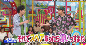 於是土田桑一直沒做任何指令站在旁邊看就來說話了『這裡根本是staff桑的陰謀吧。』雅紀就來解釋說他不知道為何說著說著,麥克風就越說越低了,然後J一度蹲下來幫雅紀在調整那個麥克風的STAND。土田桑『相葉桑到後來基本上都是用靈感在說號碼的吧。』拜託開始前要確認一下道具嘛!!不過還是第一次看到發生這樣的事呢。